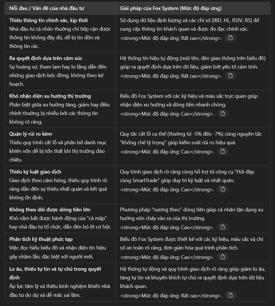 “Trong quá trình giao dịch chứng khoán, bạn đã gặp phải những khó khăn hay ‘nỗi đau’ nào? Theo bạn, liệu phương pháp Fox System có giải quyết hiệu quả những vấn đề đó không? Hãy chia sẻ trải nghiệm và ý kiến của bạn để cùng nhau thảo luận!”