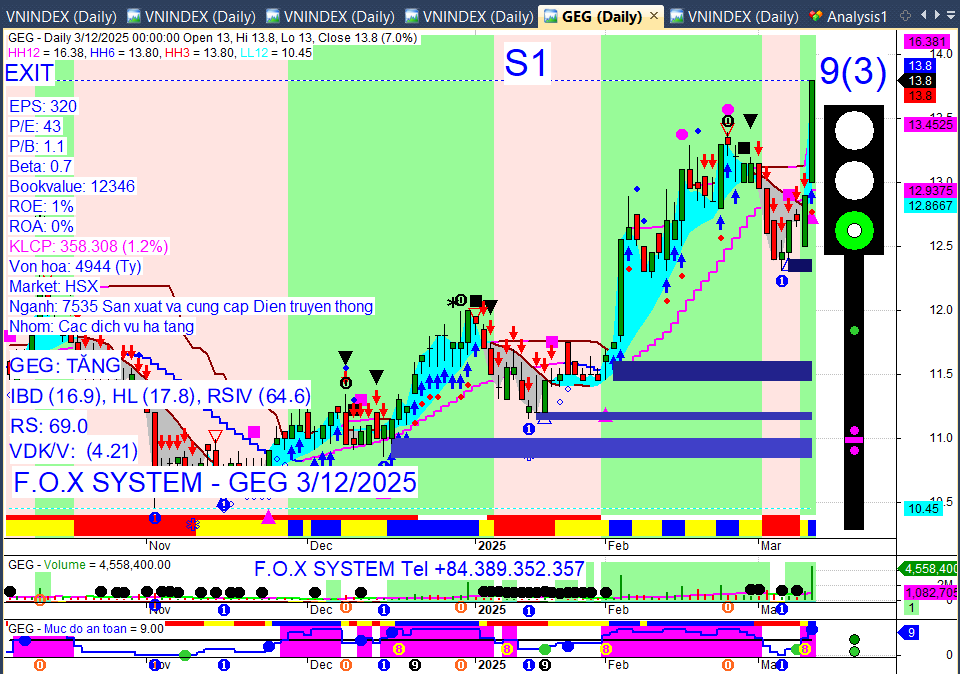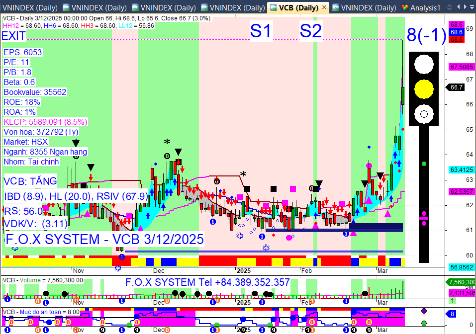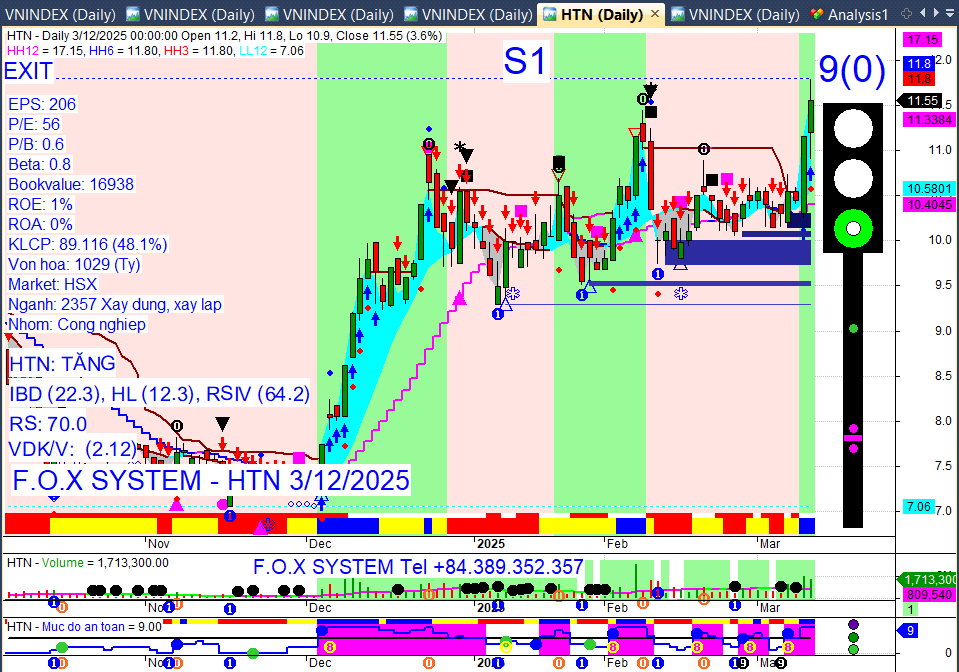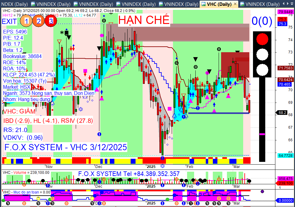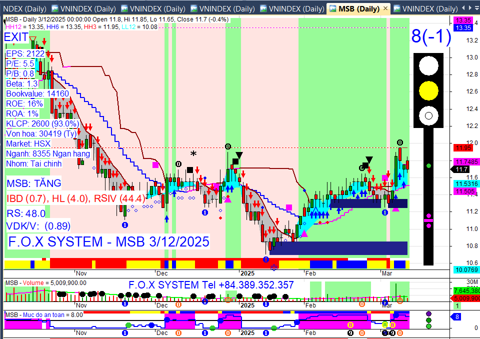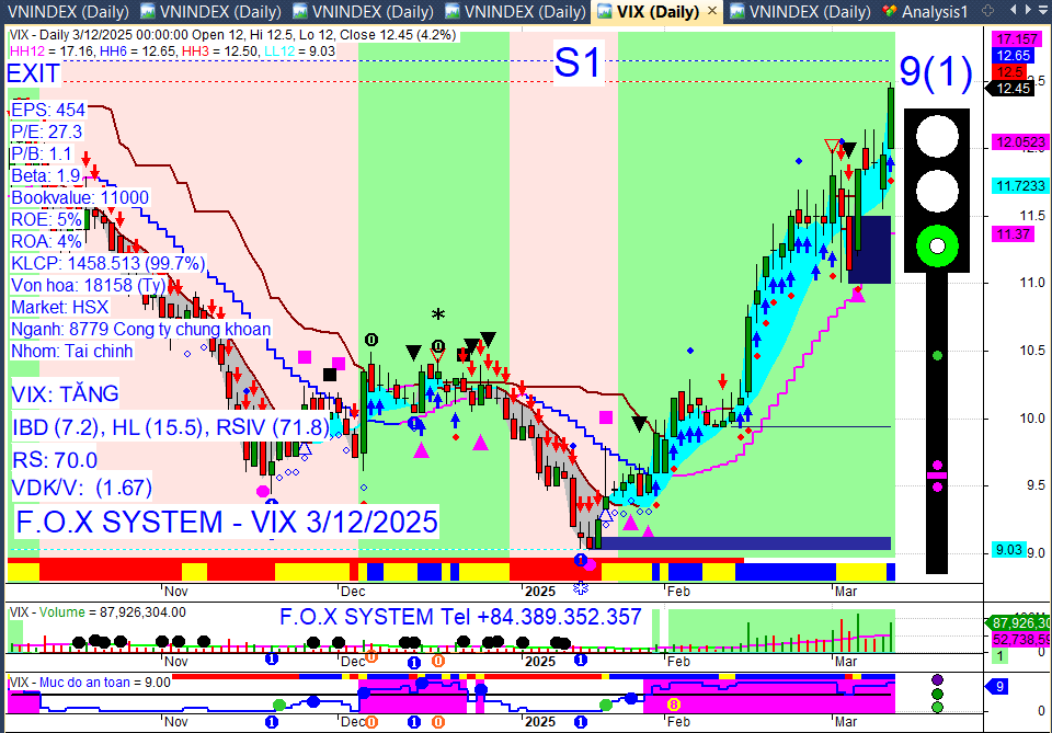 Chỉ số Vnindex trưa ngày 12/3/2025