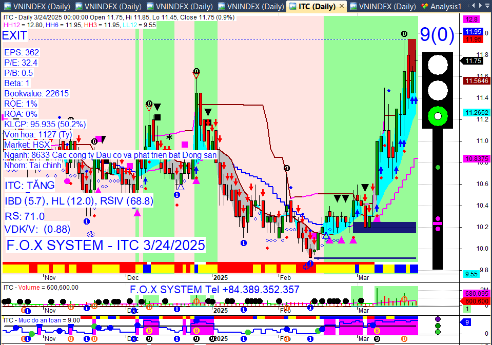 Chỉ số Vnindex trưa ngày 24/3/2025