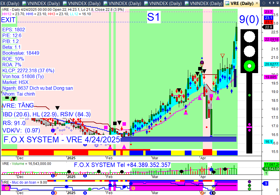 Chỉ số Vnindex cuối ngày 24/4/2025