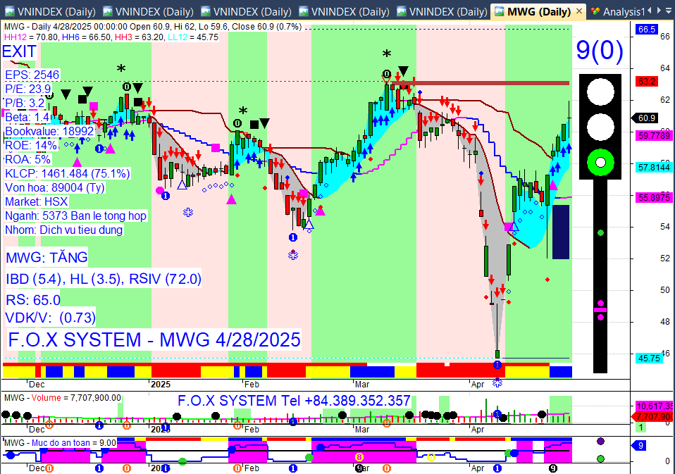 Chỉ số Vnindex cuối ngày 28/4/2025