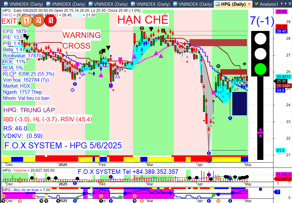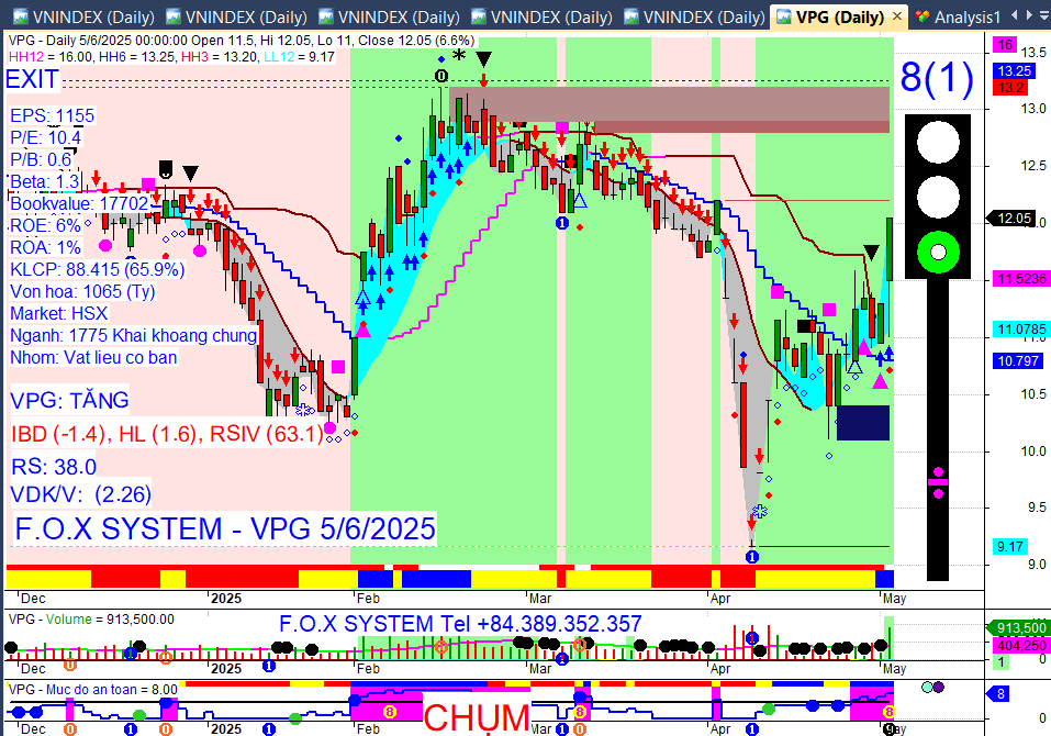 Chỉ số Vnindex cuối ngày 6/5/2025