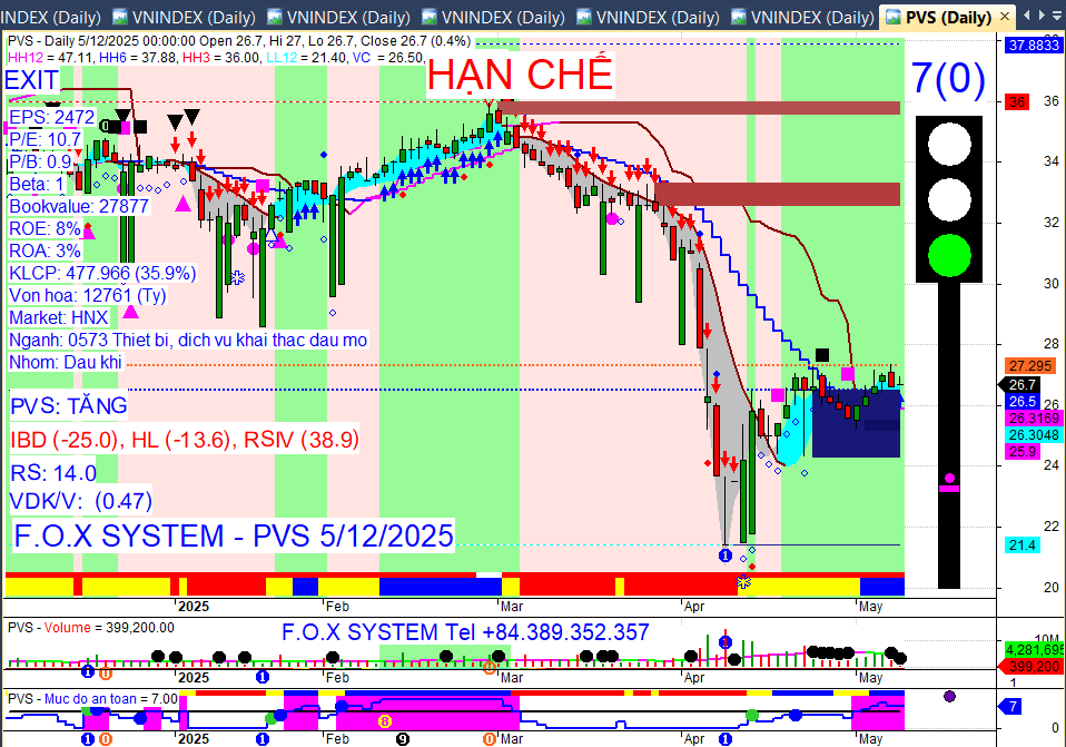 PVS mũi tên xanh ngay sát hỗ trợ. Chỉ số vẫn yếu nhưng khó chết