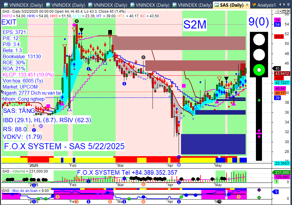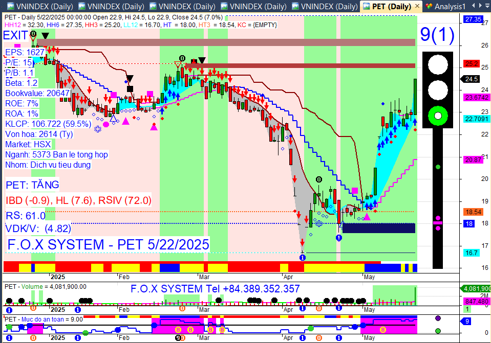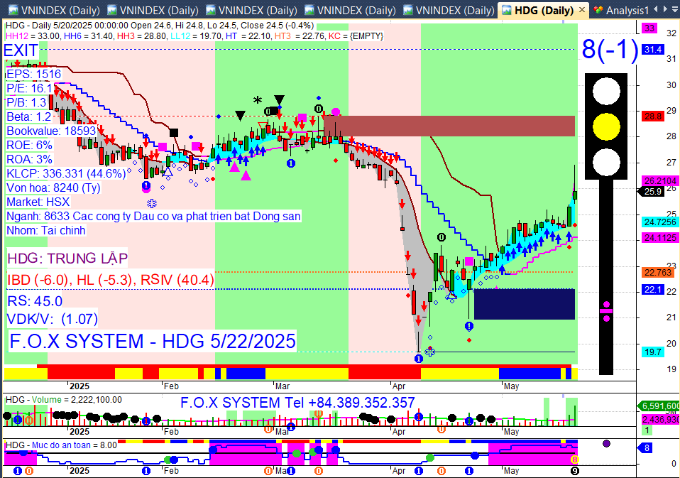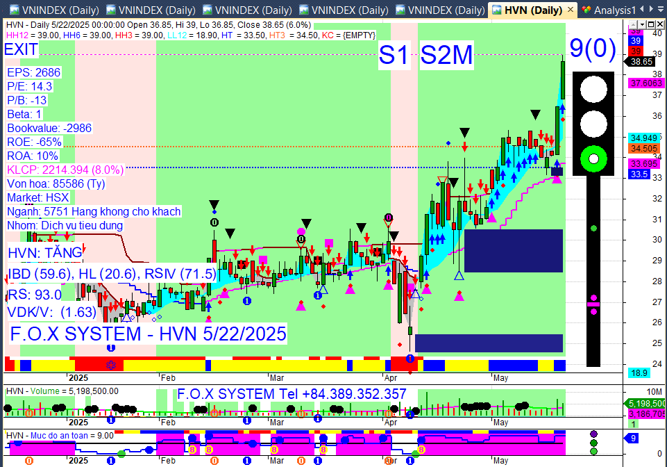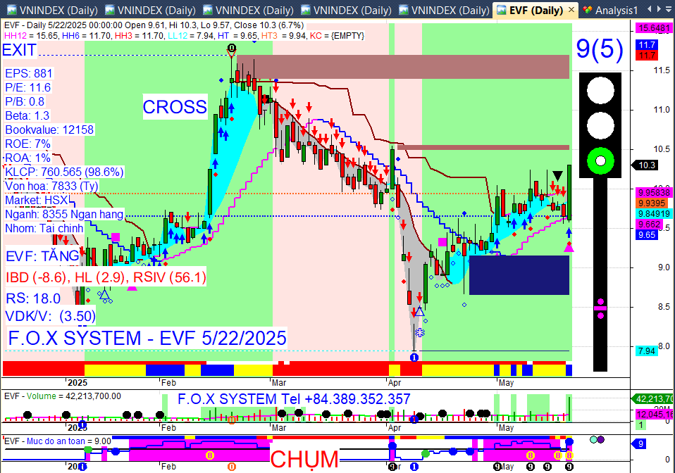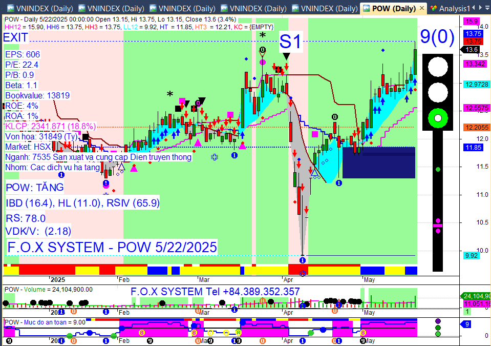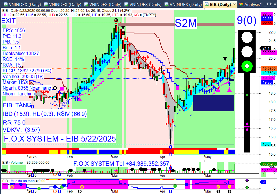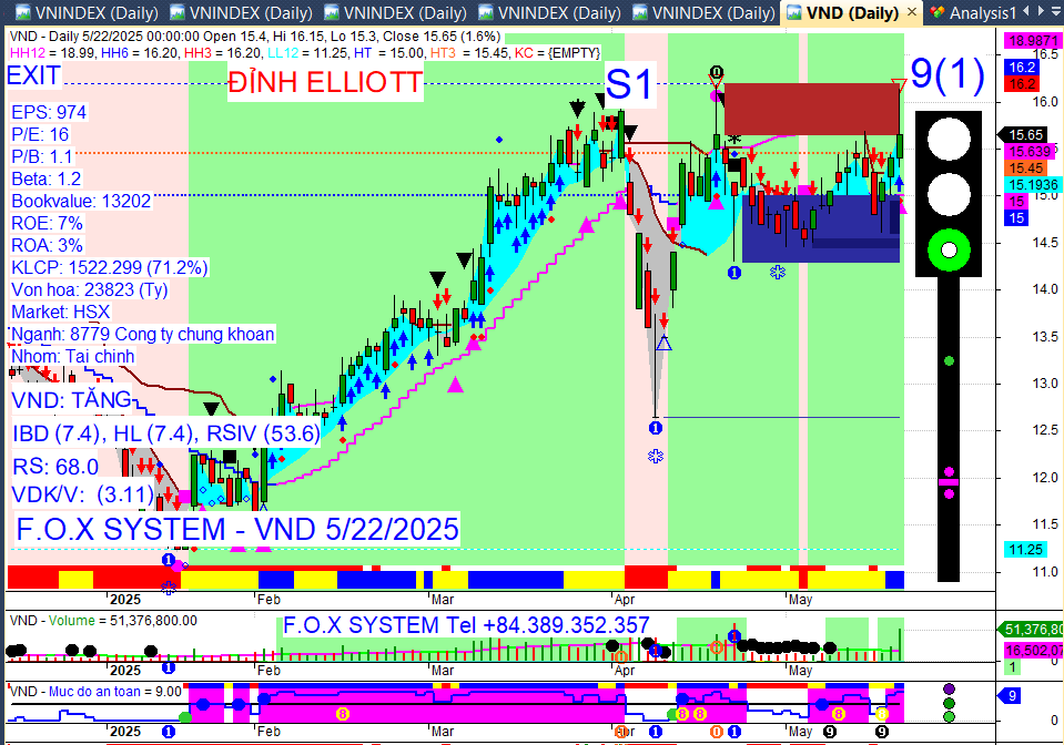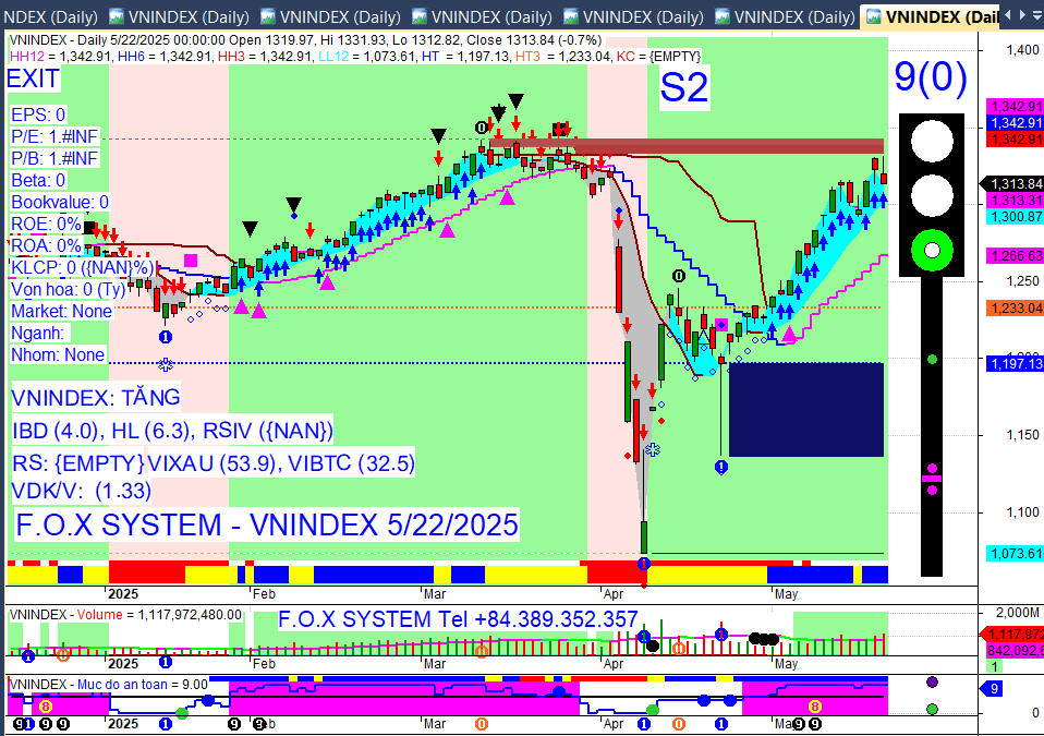 Chỉ số Vnindex cuối ngày 22/5/2025