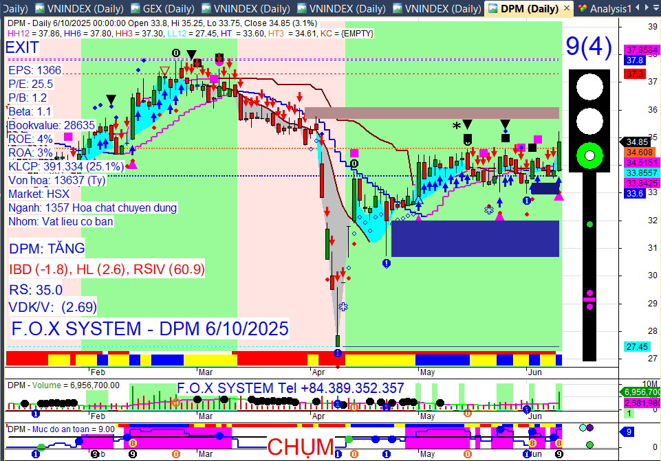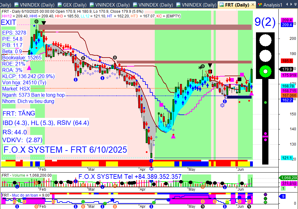 Chỉ số Vnindex cuối ngày 10/6/2025.