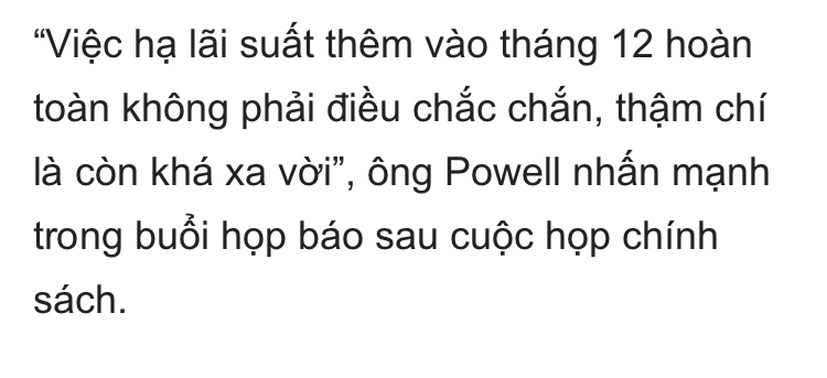 Đây gọi là FED’s 10-2 vote, như ở pic cũ Vam nói qua về tỷ lệ thuận-chống khi bỏ phiếu giảm lãi suất. K có gì chắc chắn cả