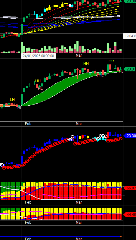 Giữ dc mốc 51 hay ko rồi mới tính dc mốc tiếp theo, nếu thủng 51 khả năng sẽ về mốc trung hạn 45. Ưu điểm dòng tiền tạo lập khá mạnh mẽ nhược điểm là vùng quá mua đối với em.