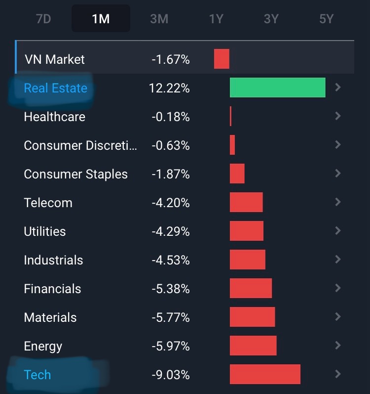 còn tích sản phải gom từ đáy gom lên, ví dụ tech, bọn năng lượng hoá chất cũng ở đáy. mà đứng cuối bảng chắc tech rồi