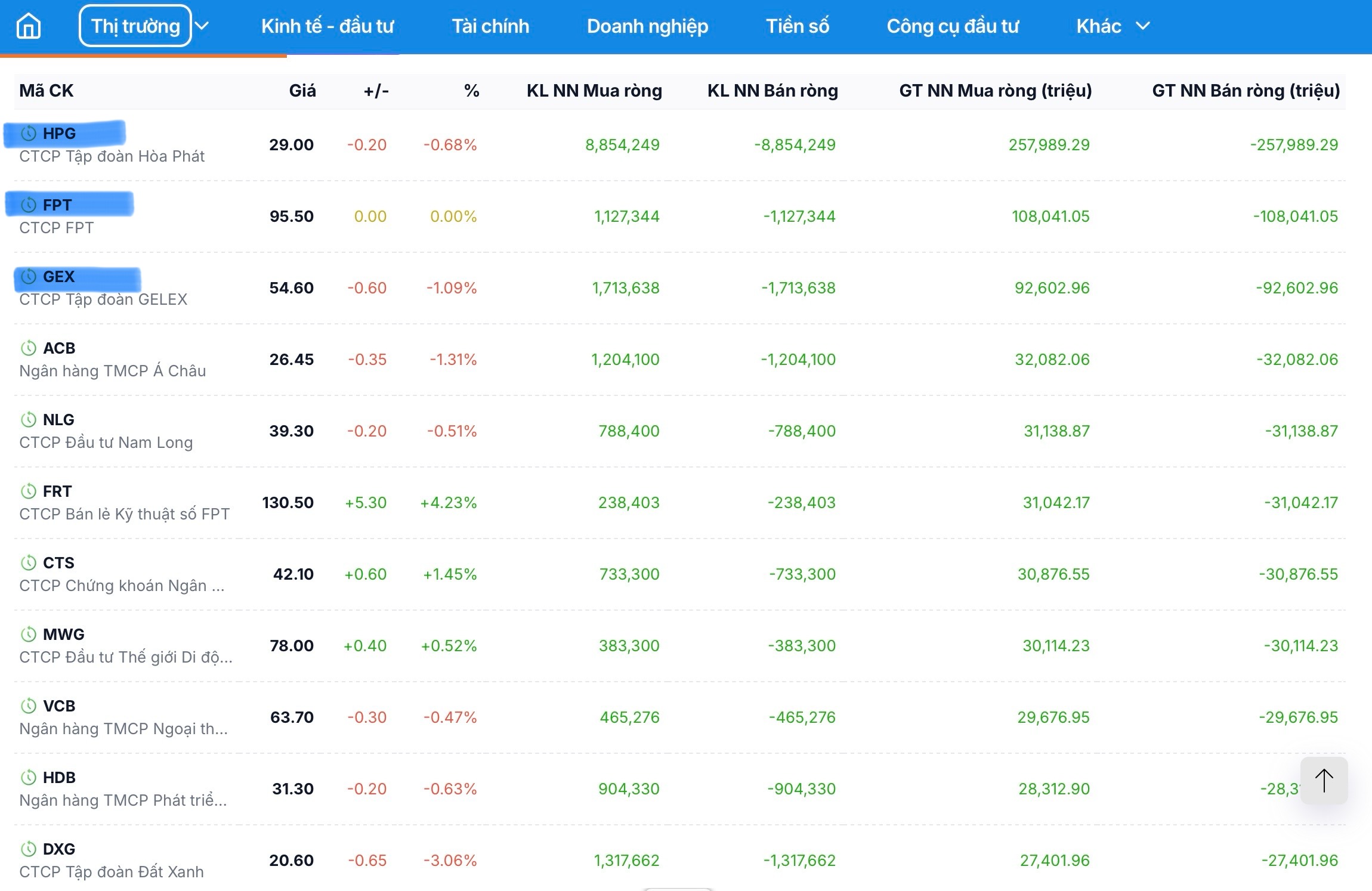 top 10 mua ròng toàn hàng tốt, 3 ông top đầu bắt rất chuẩn bài