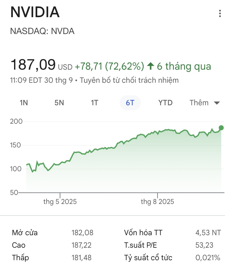 từ tháng 4 Vam đã cược NVIDIA sẽ hồi từ đáy tháng 2 quanh 120 về đỉnh cũ 150 hè này và sau đó vượt đỉnh phi lên 200 cuối năm