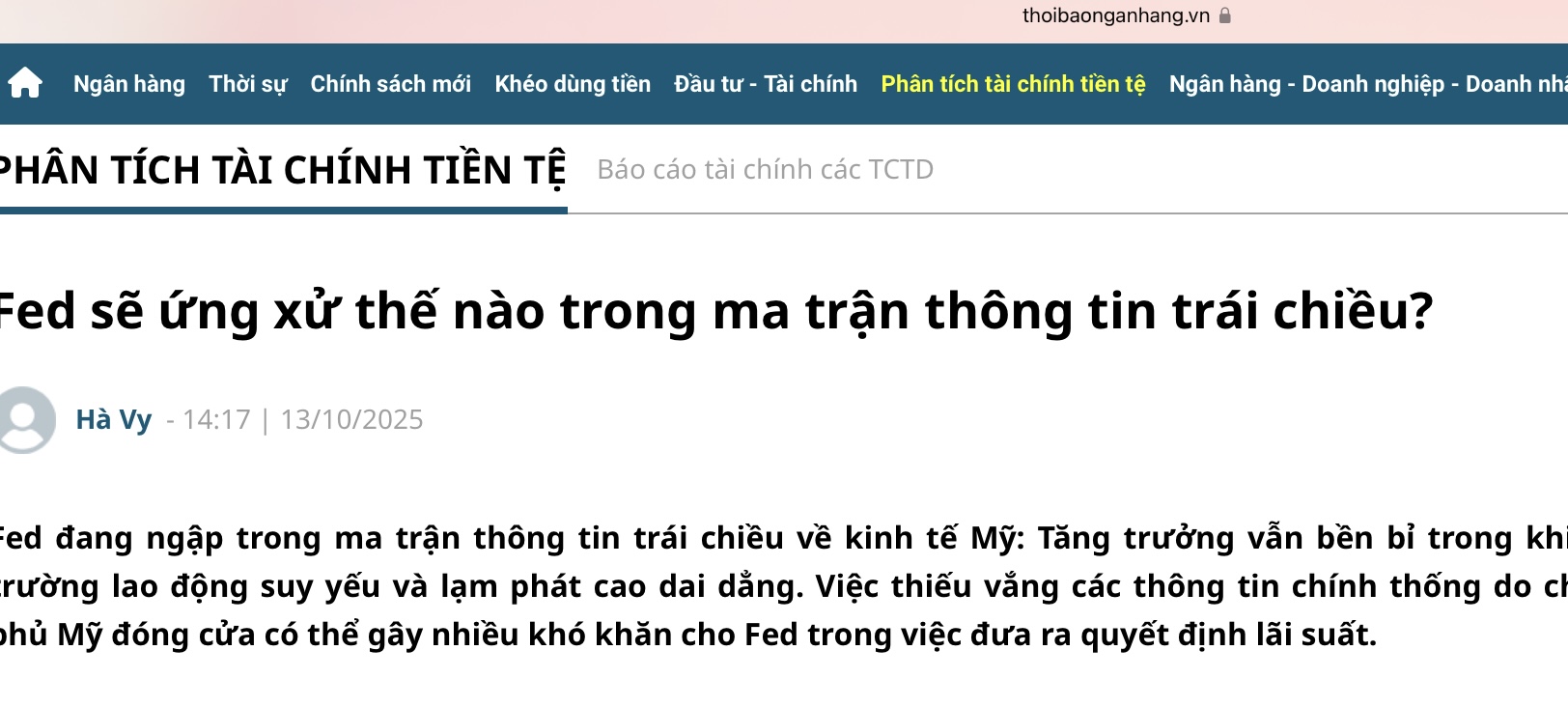 Bởi vậy hiện thị trường đang theo dõi sát phát biểu của Chủ tịch Fed Jerome Powell tại Hội nghị NABE vào thứ Ba tới (14/10) để nắm bắt thêm manh mối về lộ trình lãi suất của Fed. Một loạt các thành viên Fed khác sẽ xuất hiện trong tuần này, cùng với sự tham dự của các quan chức ngân hàng trung ương hàng đầu tham dự cuộc họp của Quỹ Tiền tệ quốc tế/Ngân hàng Thế giới tại