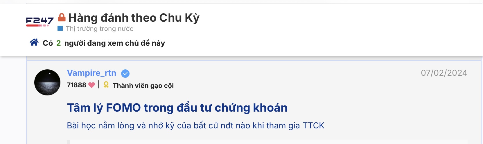 thật trùng hợp, đêm qua Vam định pót lên bài viết về FOMO mà sợ sáng nay ae chửi nên tôi xoá
