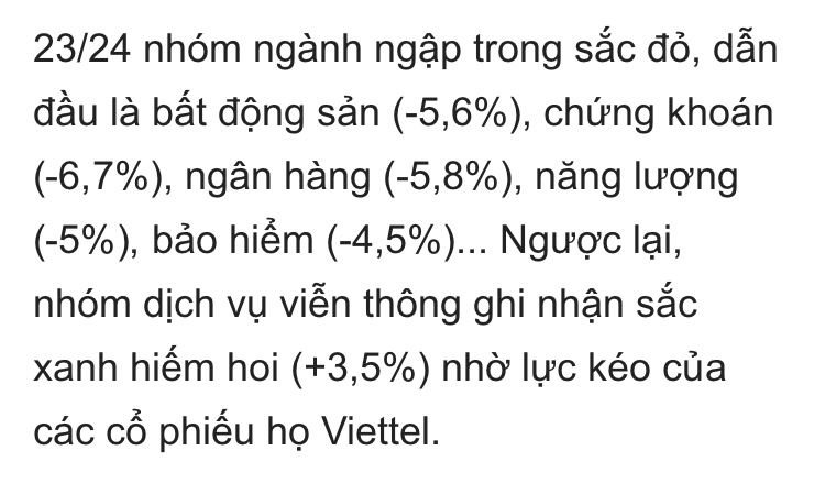 Hôm nay nhóm tech được lead bởi họ Viettel nhấp nhổm vào sóng. nếu TT k chỉnh mạnh thì ae tech đã ăn mừng