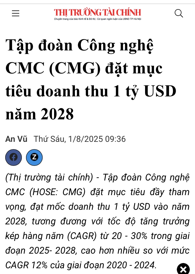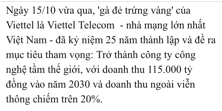 Mục tiêu của Viettel làm tôi nhớ tới mục tiêu của CMG cũng đặt ra gần đây: doanh thu 1 tỷ đô năm 2028