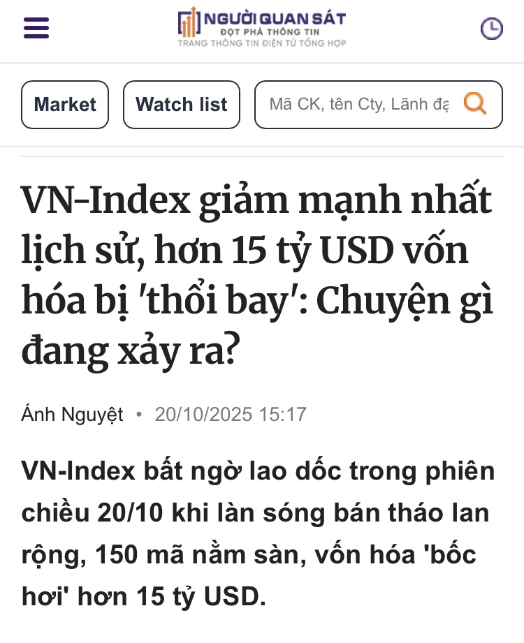 Nay lại là phiên giảm mạnh nhất lịch sử, cưa đổ kỷ lục phiên tháng 4 năm nay.