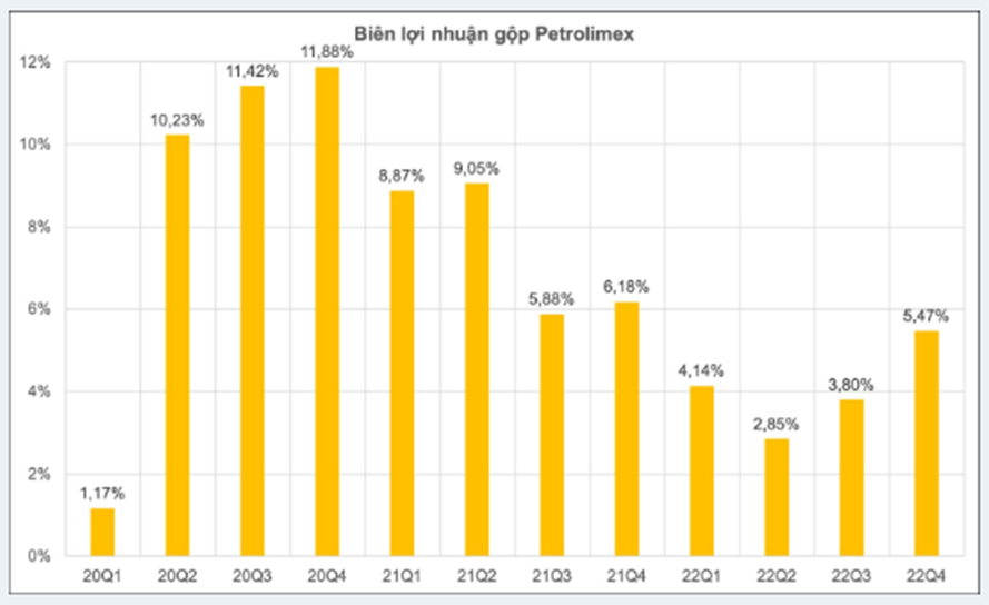 Cụ thể, sau khi biên lợi nhuận gộp rơi về 2,8% vào quý 2, thì chỉ số này đã phục hồi mạnh về mức 5,5% trong quý 4. Doanh thu đạt được 78.383 tỷ PLX đem về 1.168 tỷ lợi nhuận, mức tăng trưởng lần lượt là 58.8 % và 96% so với cùng kỳ.