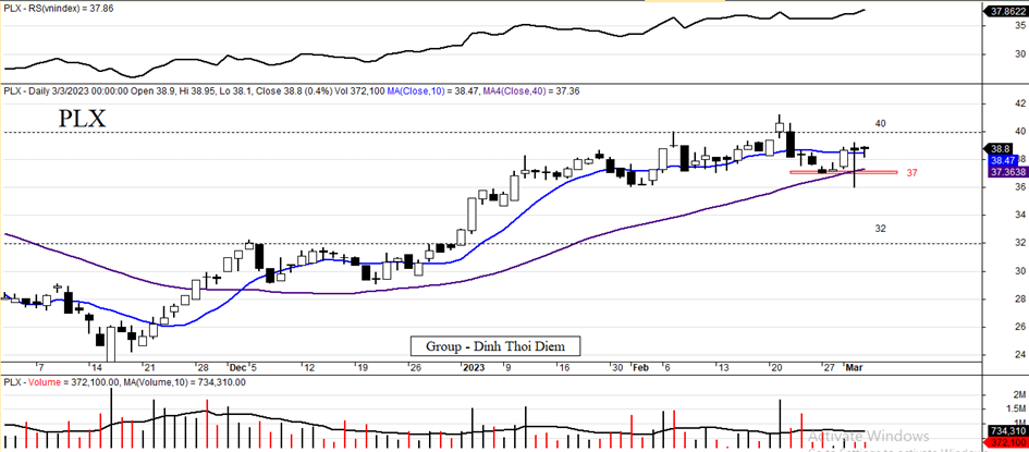 Hiện tại, sau khi thoát nền giá số 1 tăng giá được khoảng 30%, thì PLX đang ở nền giá số 2, quanh vùng giá 38-39.