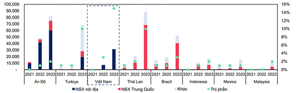 Doanh số - thị phần ô tô điện tại Việt Nam và một số quốc gia trên thế giớ