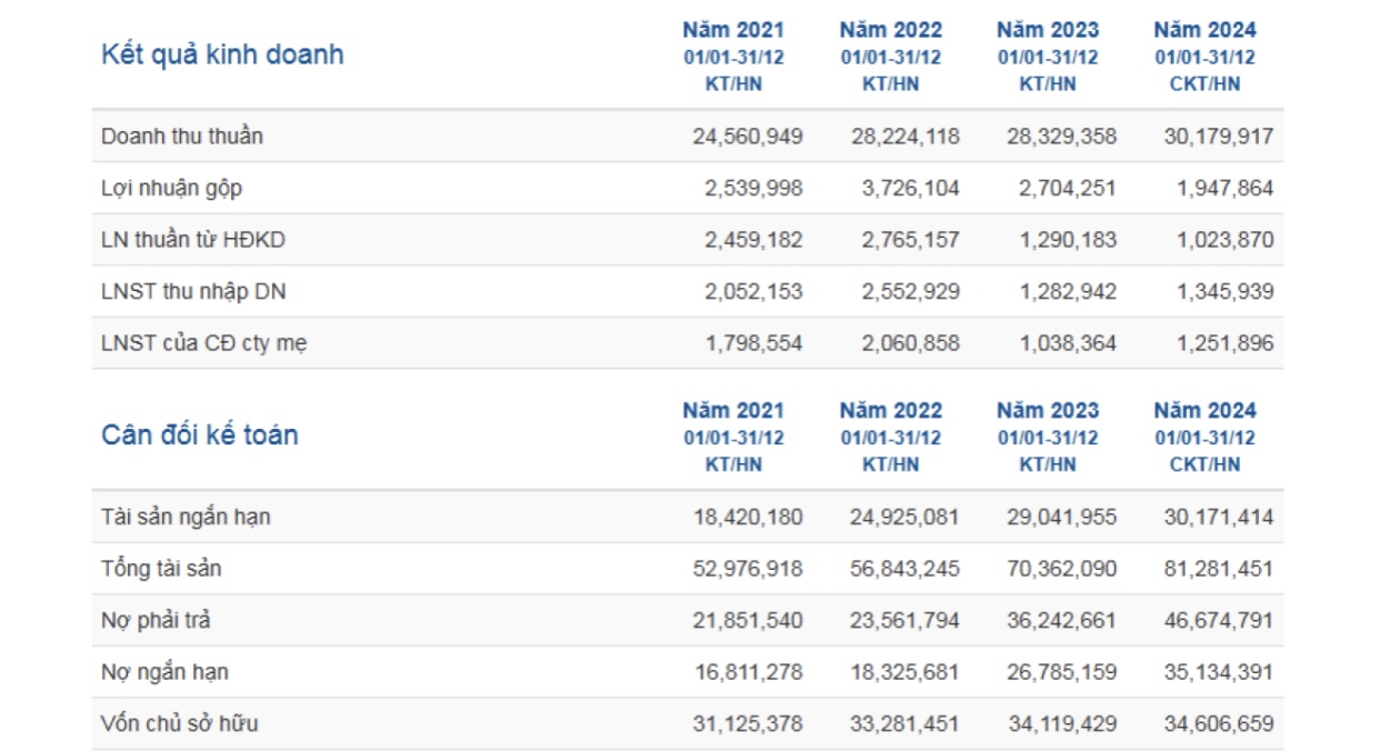 Trong cả năm 2024, doanh thu của POW đạt 30.180 tỷ đồng, tăng 6,5% so với cùng kỳ. Lợi nhuận sau thuế của công ty mẹ đạt 1.252 tỷ đồng, tăng 20,6% so với năm trước. Thành quả tích cực này chủ yếu nhờ khoản bồi thường bảo hiểm cho điện than VA1 đạt 1.084 tỷ đồng