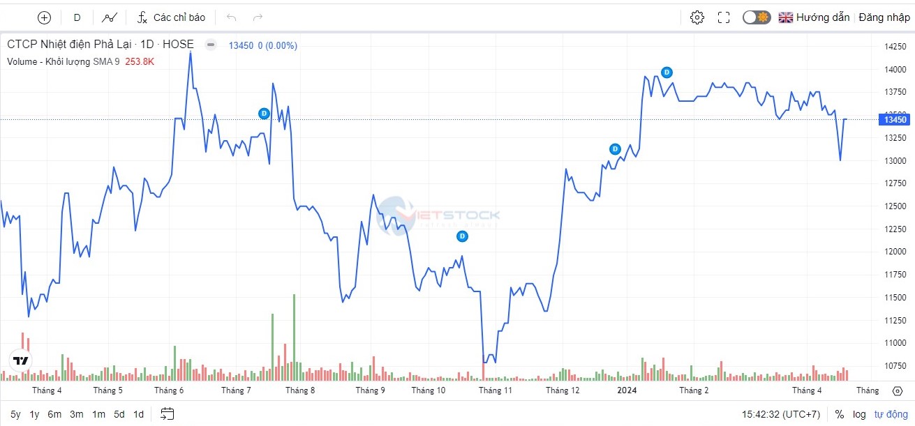 Diễn biến thị giá cổ phiếu PPC trên thị trường.