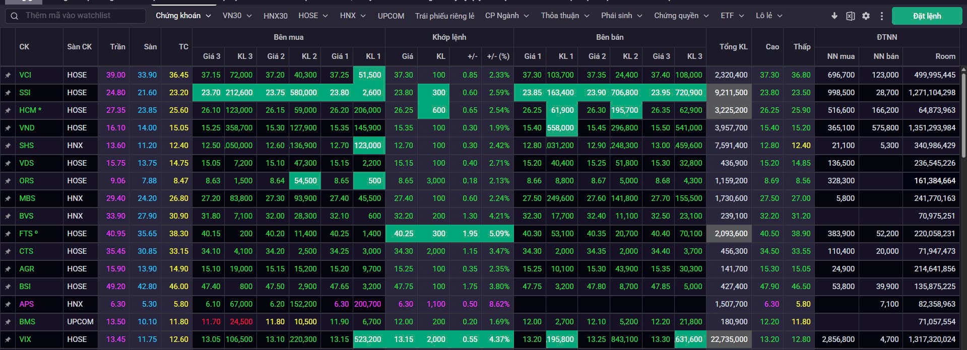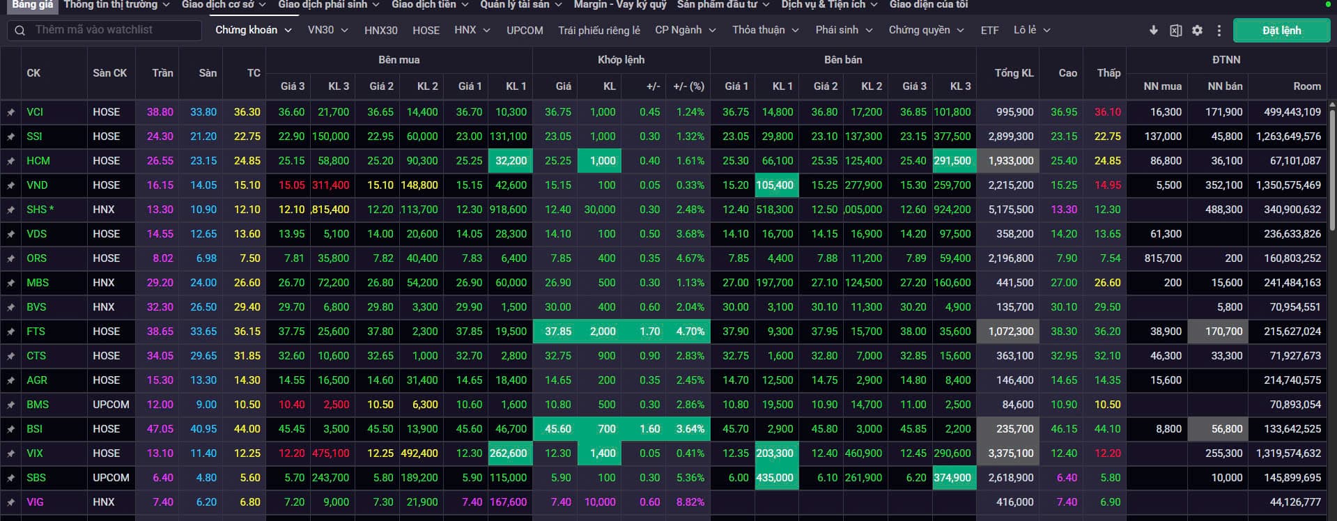 Các mã như VIX tăng 3,67%, SSI tăng 3,07%, HCM tăng 3,67%, VCI tăng 3,77%, SHS tăng 4,38%, MBS tăng 4,03%, FTS tăng 4,94%, cho thấy sự quan tâm lớn của nhà đầu tư đối với nhóm này.