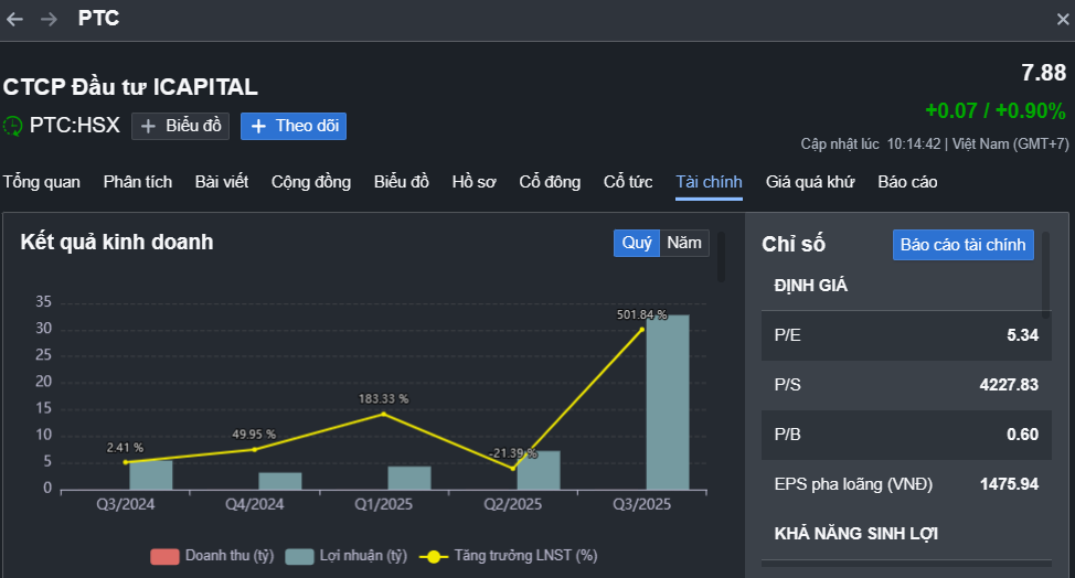 PTC của Công ty CP Đầu tư iCapital thoát khỏi diện cảnh báo từ ngày 20/8/2024 sau khi đạt lợi nhuận sau thuế chưa phân phối 14,14 tỷ đồng, theo BCTC soát xét bán niên 2024.Tháng 4/2022, Công ty đổi tên thành Công ty CP Đầu tư iCapital, vốn điều lệ hiện tại hơn 323 tỷ đồng. Doanh nghiệp hoạt động trong lĩnh vực xây lắp và đầu tư tài chính, quản lý vận hành các công ty con, công ty liên kết trong lĩnh vực điện gió. Trong đó, Đầu tư iCapital sở hữu Công ty CP điện gió Hướng Linh 8 với 50,1% vốn điều lệ, và có 1 công ty liên kết là Công ty CP điện gió Hướng Linh 7 (nắm 32,81% vốn).