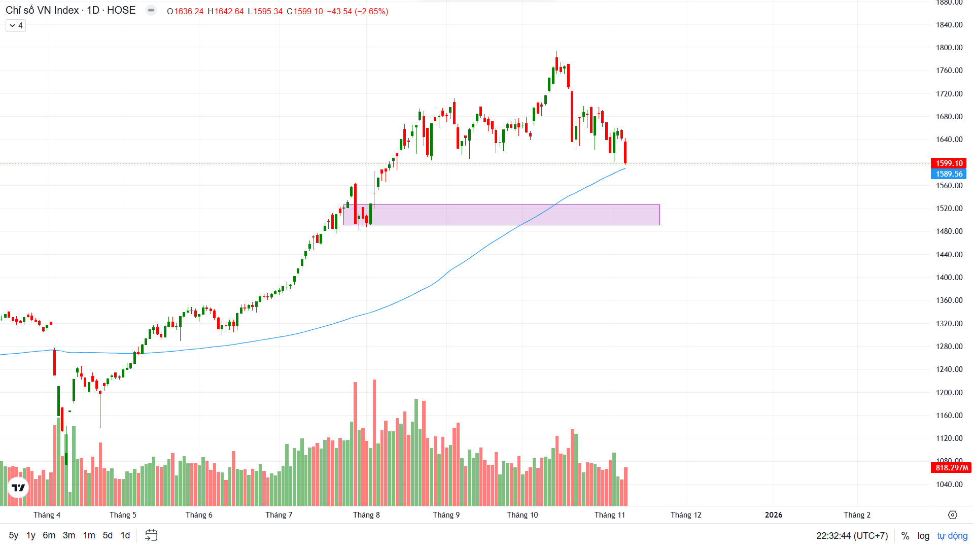 1,500-1,520 điểm sẽ là vùng để VNIndex cân bằng còn trong quá trình giảm giá sẽ ko phải rơi thẳng đứng mà có các nhịp hồi xen kẽ.