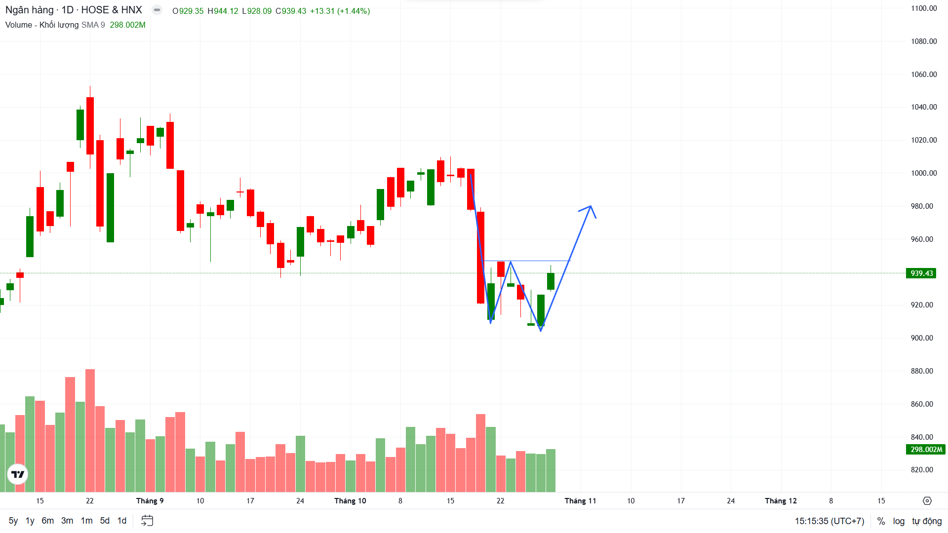 VNindex và Nhóm bank tạo mẫu hình 2 đáy
