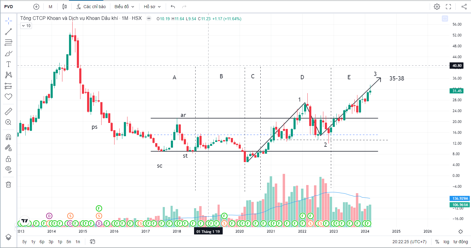 Cấu trúc sóng 123 cho thấy mục tiêu của PVD là 35-38