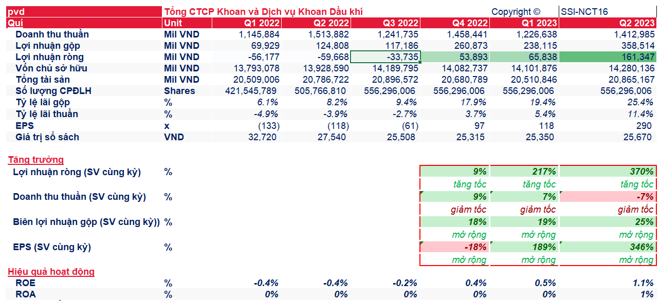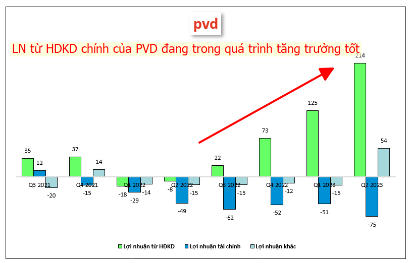 Nhờ có nền lợi nhuận thấp trong năm 2022 nên quý 3 và quý 4 tới, PVD sẽ tiếp tục tăng trưởng tốt so với cùng kỳ nhờ hiện tại các giàn khoan của PVD đều đã được cho thuê full công suất. Điều này sẽ là tiền đề của cổ phiếu để xây dựng các nền tăng trưởng tốt của một siêu cổ phiếu. Thông thường, các siêu cổ phiếu thường bắt đầu xuất hiện với dấu hiệu hồi phục KQKD và tăng trưởng lợi nhuận trong 2-3 quý liên tiếp.