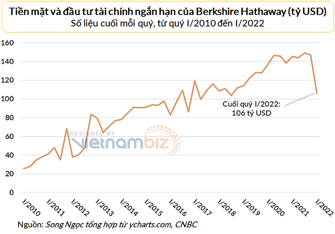Việc tích cực đầu tư vào cổ phiếu đã làm cho khối tiền mặt và đầu tư tài chính ngắn hạn (chủ yếu là trái phiếu chính phủ) của Berkshire Hathaway giảm mạnh, còn 106 tỷ USD vào ngày cuối quý I. Đây là mức thấp nhất kể từ quý III/2018.
