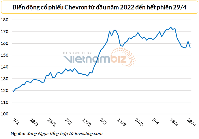Cổ phiếu Chevron tăng hơn 30% trong 4 tháng đầu năm 2022.