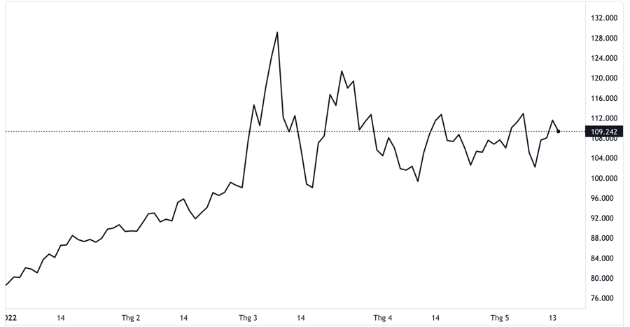 Diễn biến giá dầu Brent giao sau tại thị trường London từ đầu năm đến nay. Đơn vị: USD/thùng - Nguồn: TradingView.