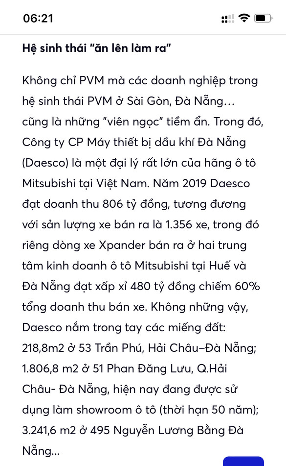 Không chỉ PVMachino mà các công ty con, công ty liên kết của PVMachino ở Sài Gòn, Đà Nẵng… cũng có nhiều tiềm năng. Chẳng hạn, Công ty CP Máy thiết bị dầu khí Đà Nẵng (Daesco) là một đại lý rất lớn của hãng ô tô Mitsubishi tại Việt Nam. Năm 2019, Daesco đạt doanh thu 806 tỷ đồng, tương đương với sản lượng xe bán ra là 1.356 xe. Daesco hiện đang quản lý sử dụng nhiều khu đất ở Đà Nẵng như 218,8m2 ở số 53 Trần Phú; 1806,8 m2 ở số 51 Phan Đăng Lưu, hiện nay làm showroom ô tô (thời hạn 50 năm); 3241,6 m2 ở số 495 Nguyễn Lương Bằng hiện là Trung tâm kinh doanh và bảo hành ô tô, xe tải nặng và xe chuyên dùng; 15.356 m2 ở số 10 Nguyễn Phục (Khu công nghiệp dịch vụ Thủy sản Đà Nẵng). Daesco cũng được nhà nước cho thuê đất với thời hạn 50 năm tính từ năm 2016 ở Khu đô thị mới Đông Nam Thụy An (Thừa Thiên Huế) để đầu tư xây dựng Mitsubishi Daesco Huế