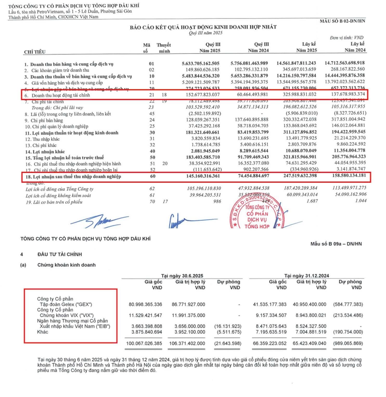 Dù vậy, điểm trừ đó là LN không phải đến từ Core kinh doanh cốt lõi, mà đến từ hoạt động kinh doanh chứng khoán (PET nắm giữ các cổ phiếu đã tăng mạnh GĐ quý 3 như GEX, VIX, EIB)