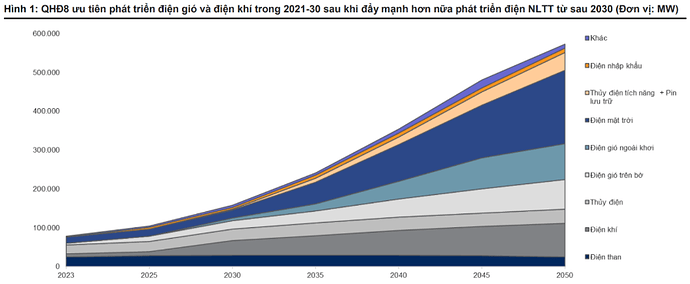 - Điện hạt nhân Ninh Thuận 2: Nếu Nhà máy Ninh Thuận 1 do EVN làm chủ đầu tư, thì Ninh Thuận 2 được giao cho PVN. Đây là một câu chuyện rất dài, tính theo chu kì 5 năm và dự kiến đến 2030 Việt Nam sẽ có thể có nguồn điện hạt nhân. Tuy nhiên theo thực tế kinh nghiệm các nước khác thì tính từ mẻ bê tông đầu tiên thì cần 6-8 năm để hoàn thành dự án. Nhiều nước bị đội vốn hoặc khó khăn thì sẽ lâu hơn nên thời gian 5 năm như hiện nay là khá bất khả thi. Chúng tôi ước tính đến 2033-2035 thì Điện hạt nhân mới có thể hòa vào dòng chảy năng lượng.