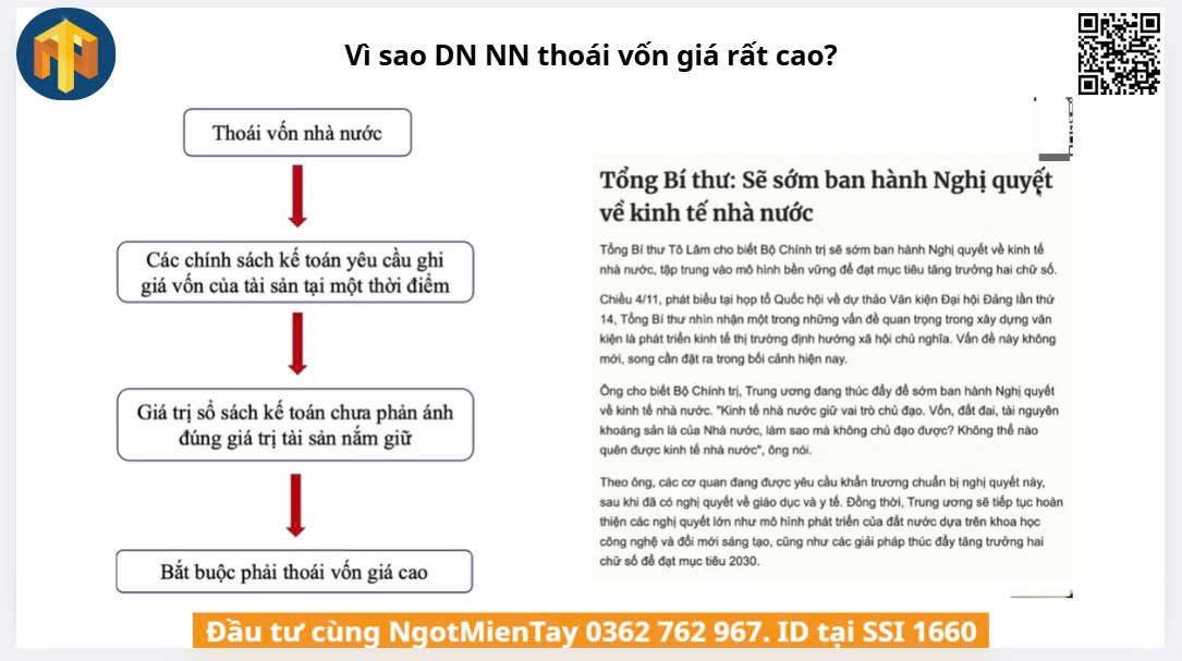 Như vậy chúng ta thấy rõ ý chí nhà điều hành ở một số DNNN quy mô lớn là phải thoái vốn, nên không khó hiểu khi giá nhóm này tăng mạnh. Vì giá trị tài sản trên sổ sách kế toán so với giá thị trường hiện tại là quá rẻ nên buộc phải thoái vốn giá cao. Các DNNN thời gian thành lập càng lâu thì giá trị thị trường hiện tại càng lớn.
