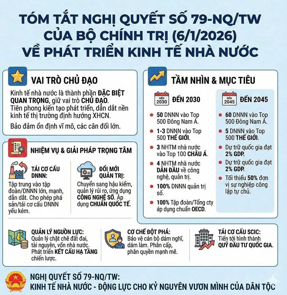 - Kinh tế Nhà nước giữ vai trò chủ đạo trong giai đoạn 2026-2030.