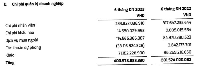 Công ty cho biết thêm chi phí quản lý giảm do chi phí nhân viên và các khoản dự phòng ghi nhận vào quý II/2023 nhỏ hơn so với cùng kỳ quý II/2022.