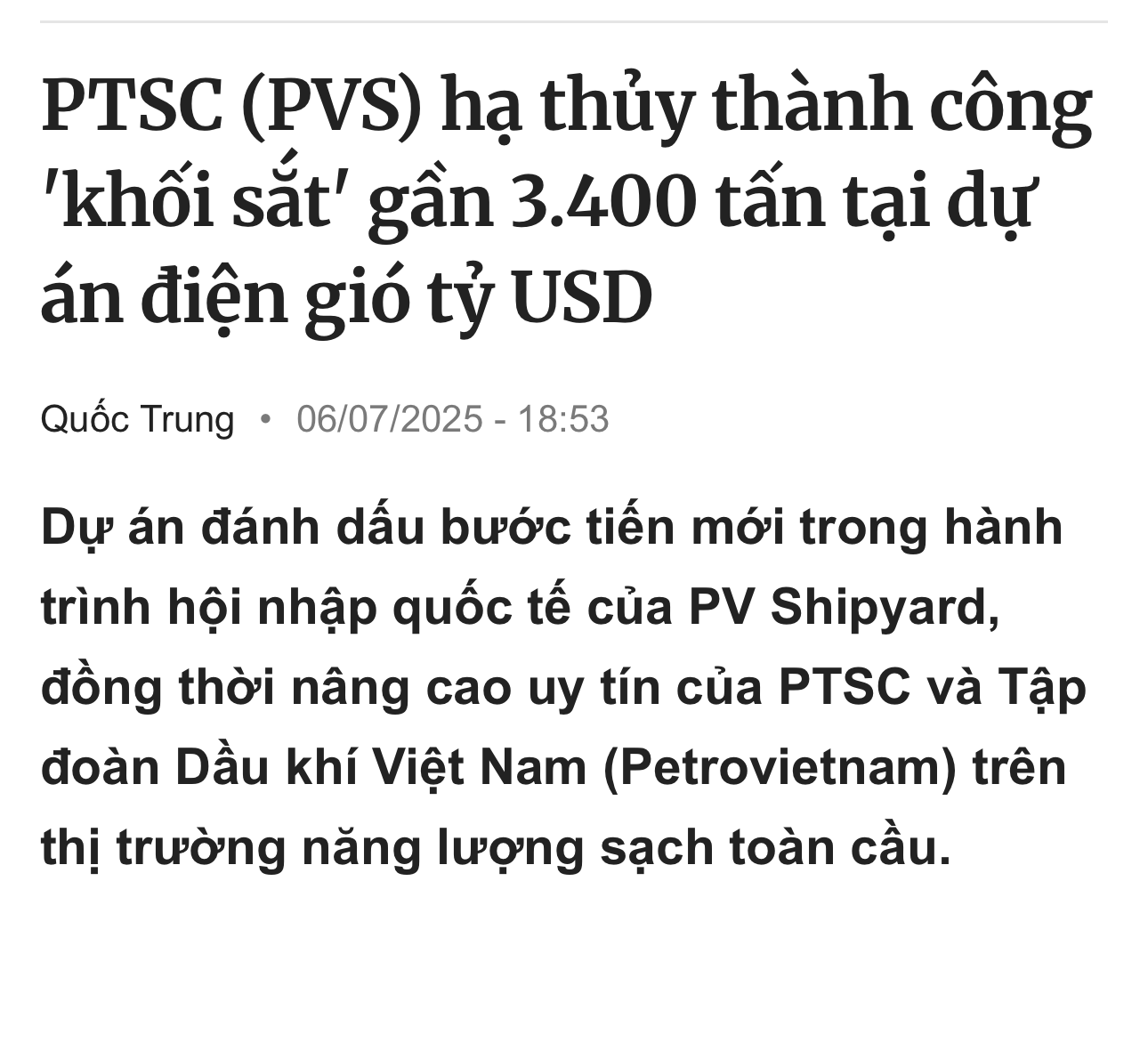 Được biết, PVS, cùng với SK Ocean Plant và Sing Da Marine Structure, là các nhà thầu M&C (chế tạo và xây lắp) cho các dự án điện gió ngoài khơi của Orsted tại Đài Loan (Trung Quốc). Dù SK Ocean và Sing Da gia nhập lĩnh vực này sớm hơn, PVS hiện sở hữu cơ sở sản xuất lớn nhất trong nhóm. Ngoài ra, PVS còn cung cấp dịch vụ M&C trọn gói và có năng lực chế tạo mạnh mẽ trong xây dựng ngoài khơi.