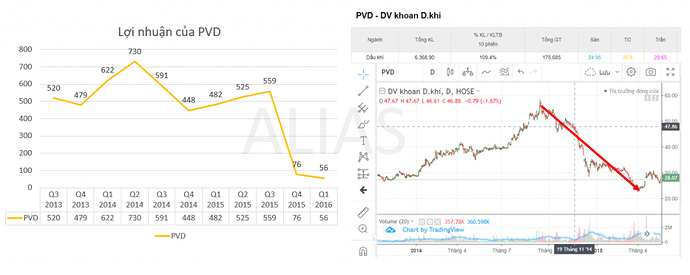 PVD PVS là các doanh nghiệp khai thác, nên lợi nhuận độ trễ so với diễn biến giá dầu. Nhưng vận động giá của cổ phiếu thường phản ứng theo vĩ mô. Tới Q4 2015 lợi nhuận PVD PVS mới giảm mạnh nhưng giá cổ phiếu đã tạo đỉnh và giảm từ Q3 2014, cùng với thời điểm giá dầu bắt đầu giảm mạnh. Theo dõi vĩ mô là 1 phần rất quan trọng trong đầu tư chứng khoán, lợi nhuận tăng giảm đột biến đôi khi chỉ là kết quả của vĩ mô.