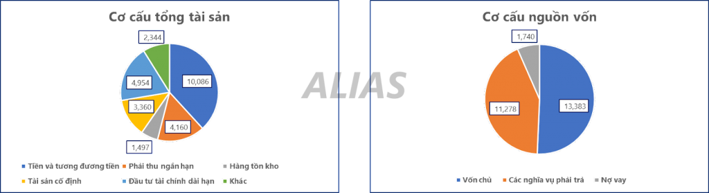 PVS cũng là 1 trong những doanh nghiệp có tài chính tốt nhất sàn HNX. Tại thời điểm cuối 2023, tổng tài sản của PVS là 26.401 tỷ, trong đó riêng tiền và tương đương tiền là 10.086 tỷ, chiếm khoảng 38% tổng tài sản của doanh nghiệp. Nợ vay của doanh nghiệp chỉ chiếm một tỷ trọng rất nhỏ với giá trị là 1.740 tỷ. Với việc nợ vay thấp và nắm giữ một lượng tiền mặt rất lớn thì PVS gần như không có áp lực về tài chính.