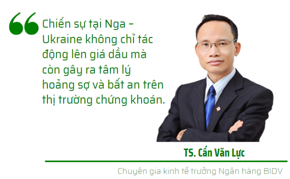 Cũng theo ông Lực, chiến sự tại Nga – Ukraine không chỉ tác động lên giá dầu mà hiện còn gây ra tâm lý hoảng sợ và bất an trên thị trường chứng khoán. Thay vào đó, tâm lý của các nhà đầu tư cũng sẽ bị ảnh hưởng, họ có xu hướng tìm đến tài sản an toàn hơn như vàng, các loại ngoại tệ như đồng Yen (Nhật), đồng Franc (Thụy Sĩ).