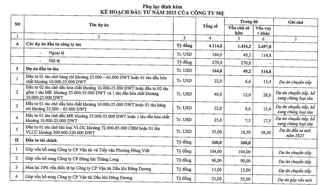- Kế hoạch kinh doanh 2023 thận trọng lý do là do nhà máy lọc dầu bảo trì nên năm nay đặt kế hoạch giảm, bên cạnh đó giá đầu tư tàu cũng tăng cao gần như là gấp đôi khiến cho chi phí đầu tư cũng tăng cao