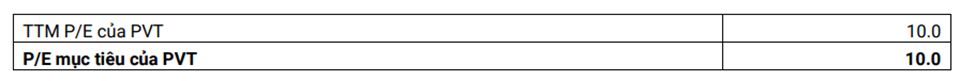 P/E mục tiêu PVT năm 2022: 10 lần.
