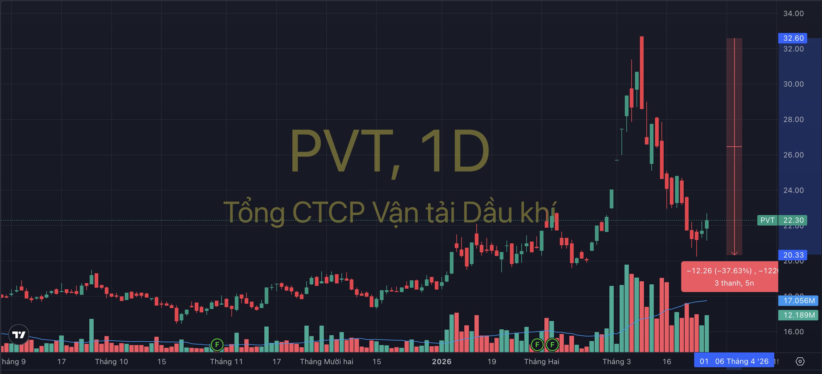 • PVT giảm ~33%, gần 5 cây sàn liên tiếp