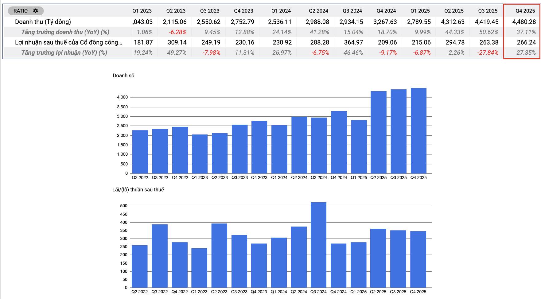 • Doanh thu +37%, lợi nhuận +27% (Q4/2025)