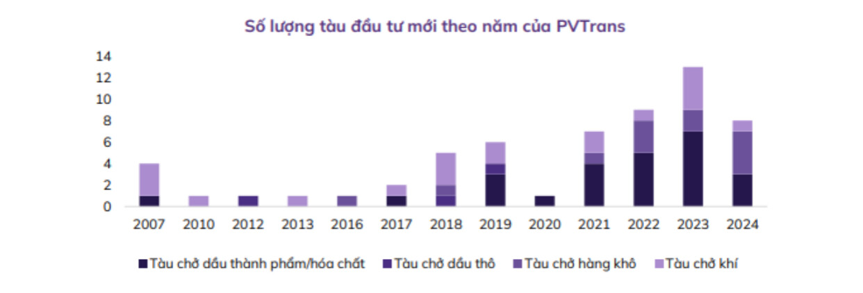 Trong năm 2024, PVT đầu tư tổng cộng 8 tàu mới (bao gồm 2 tàu dầu sản phẩm, 4 tàu hàng rời, 1 tàu hóa chất, 1 tàu LPG) với tổng mức đầu tư 153 triệu USD, cho thấy cam kết mạnh mẽ trong mở rộng năng lực vận tải. Đồng thời, công ty cũng giải ngân 231 tỷ đồng để tăng vốn cho các đơn vị thành viên, đạt 88,2% kế hoạch đầu tư tài chính.