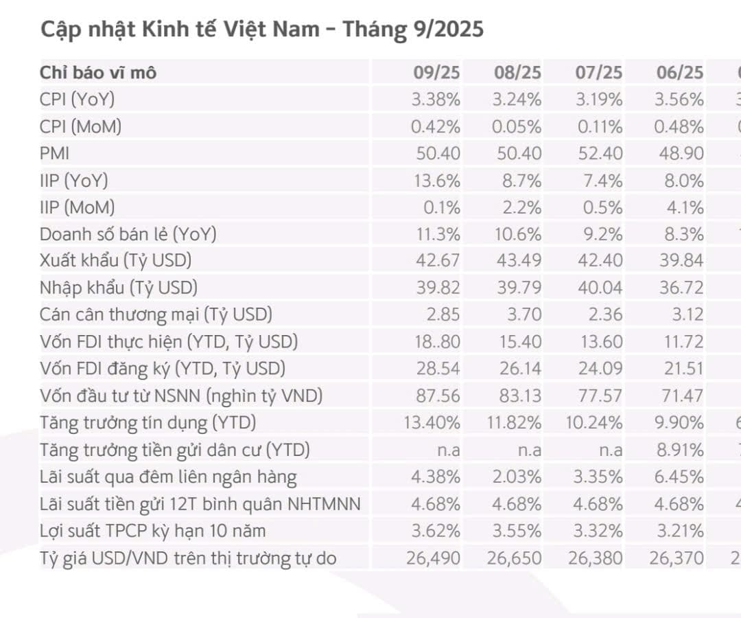 Bức tranh vĩ mô tháng 9/2025 rất sáng: tăng trưởng công nghiệp, tiêu dùng, đầu tư đều mạnh; lạm phát, tỷ giá, lãi suất vẫn trong vùng an toàn.