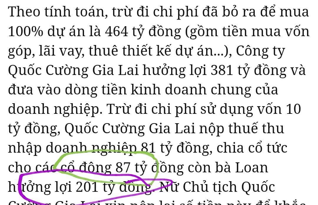 Nvl mua bán đúng luật, xây dựng dự án đóng góp XH đó là việc tốt với dân, có gì mà đem nvl vào vụ này? Định suy diễn tiêu cực hả. Còn nói về Qcg, cô Loan đã gác kiếm chính ở Qcg cách đây gần 2 năm rồi anh Cường điều hành chính, tiền khắc phục hậu quả của cô Loan là tiền cá nhân và bđs riêng không liên quan DN Quốc Cường Gia Lai. Dự án Phước Kiểng chắc chắn là anh Cường đang gấp rút chuộc dự án về 1100 tỷ đã ném vào đó rồi ko lý do gì mà suy diễn tiêu cực bopa méo sự nỗ lực của người ta được ![]()